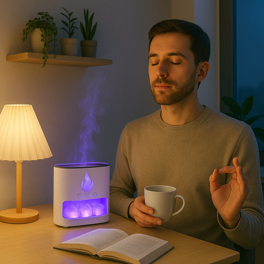 After a long day of work, turn off the chaos and turn on calm. The gentle mist, glowing Himalayan salt, and ambient flame effect make your room a stress-free zone in minutes.